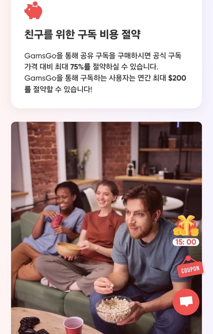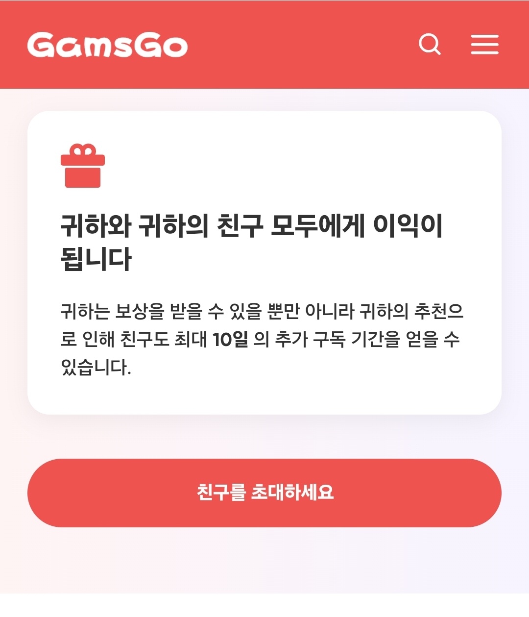 초대받은 다른 사람들이 겜스고에 가입하고 서비스를 구독하면 수수료를 받을 수 있게 된다...