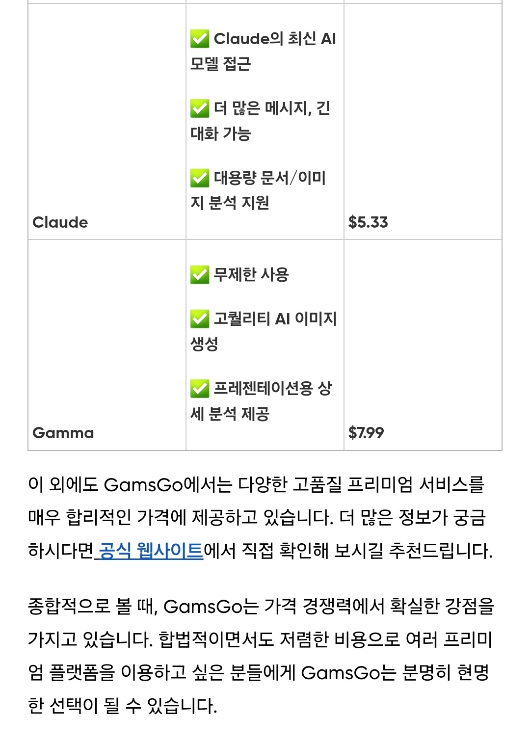 개인적으로는 ChatGPT를 업무용으로 사용하기 때문에 여전히 개인 계정을 유지하고 있지만, 가볍게 AI 서비스를 이용하고 싶거나 여러 엔터테인먼트 서비스를 저렴하게 이용하고 싶다면 겜스고가 훌륭한 대안이 될 수 있다고 생각한다