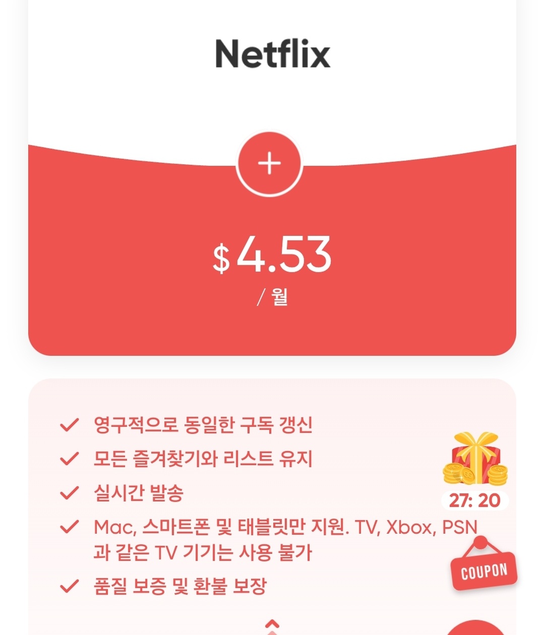 - 할인 코드: 가입 시 표시되는 할인 쿠폰을 적용하면 추가 할인을 받을 수 있다